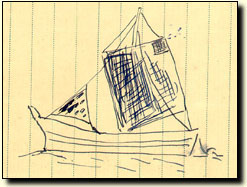 This morning I went by the discount train to Aomori and the seaside. There were three sailboats on the water and I could see the horizon. It was so nice that I wanted to draw a picture.